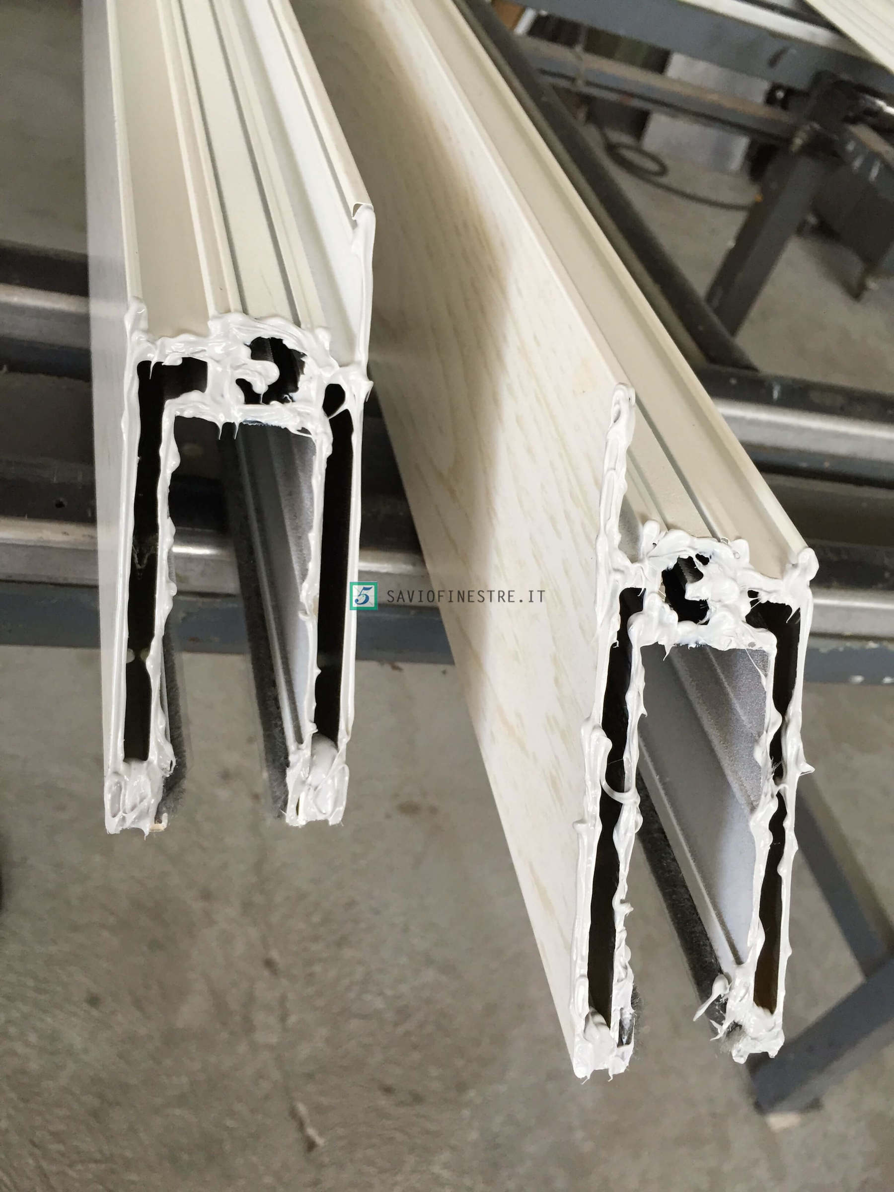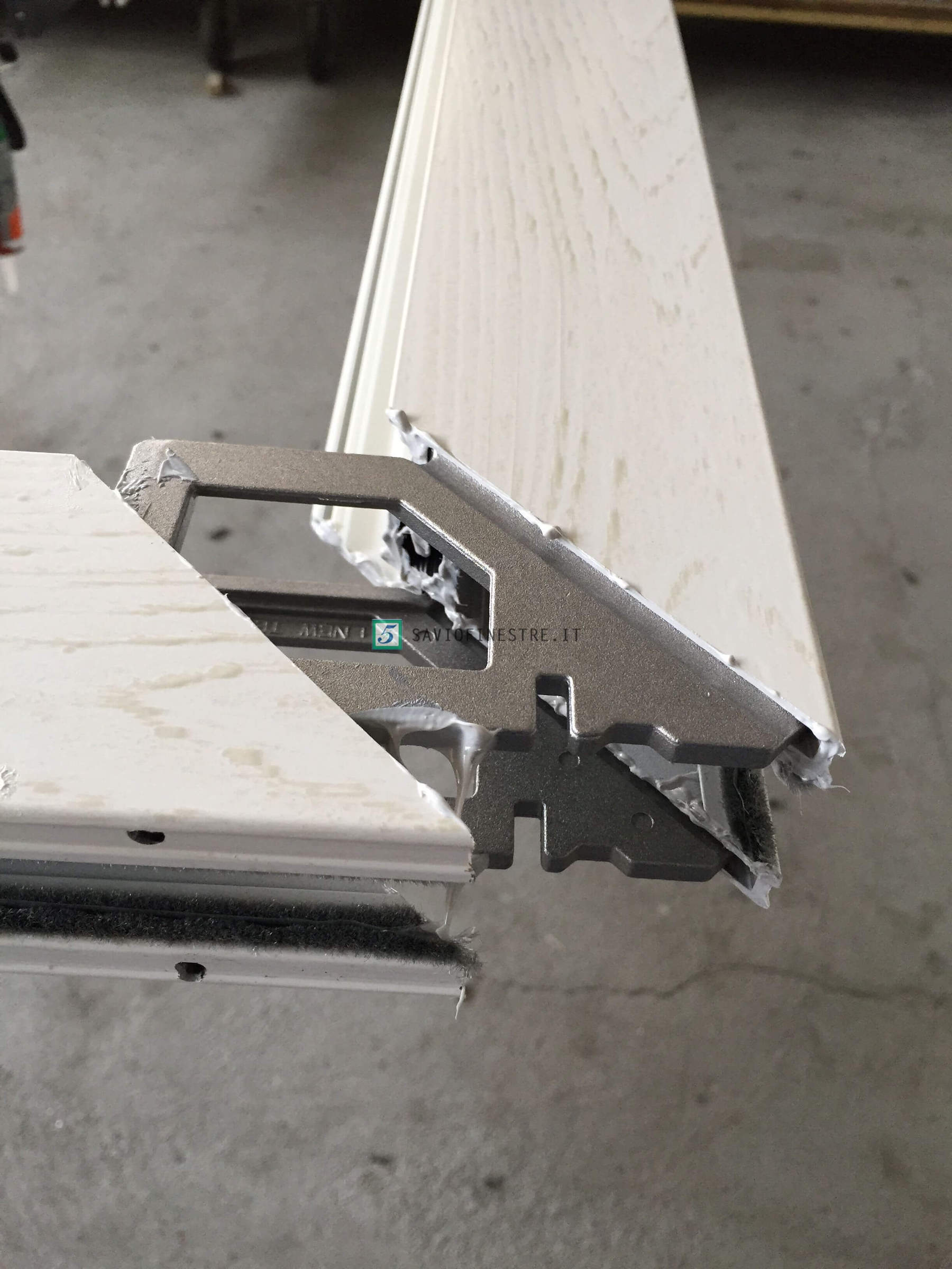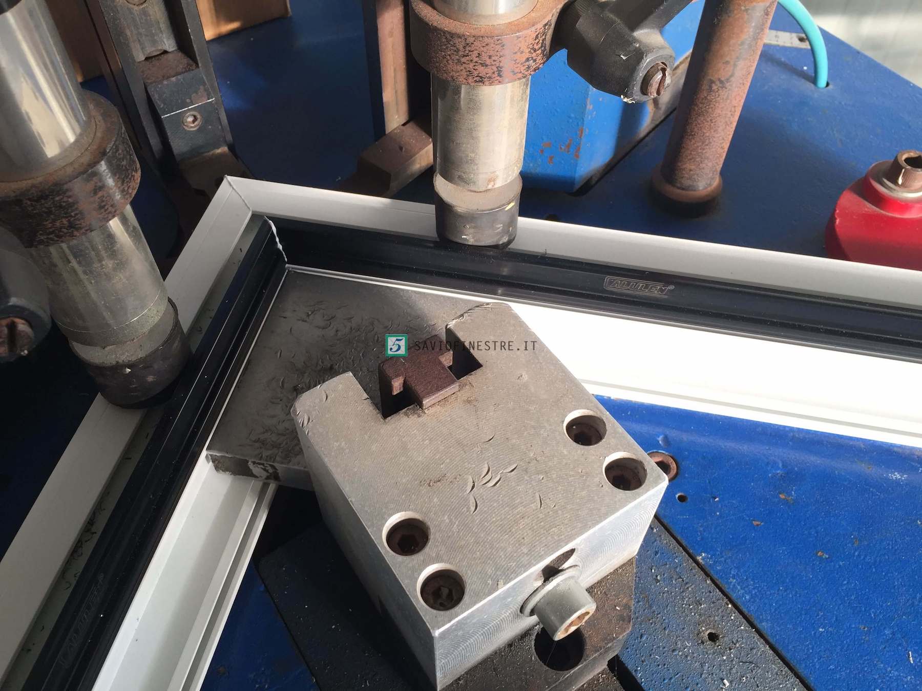 Come noterete dalle foto, le giunzioni dei profili in alluminio dei nostri serramenti sono trattate con la massima accortezza per renderle impenetrabili dagli agenti atmosferici. Direttamente sul taglio dei profili applichiamo collanti poliuretanici ed inseriamo non una, non due bensì quattro squadrette a tiraggio meccanico o in alternativa a cianfrinare.